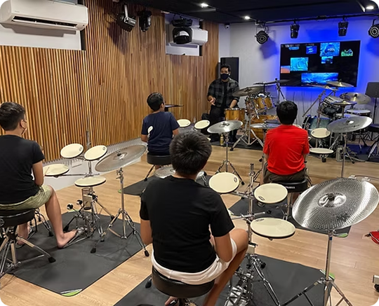 Fully equipped rooms ideal for drum classes on acoustic and electronic kits